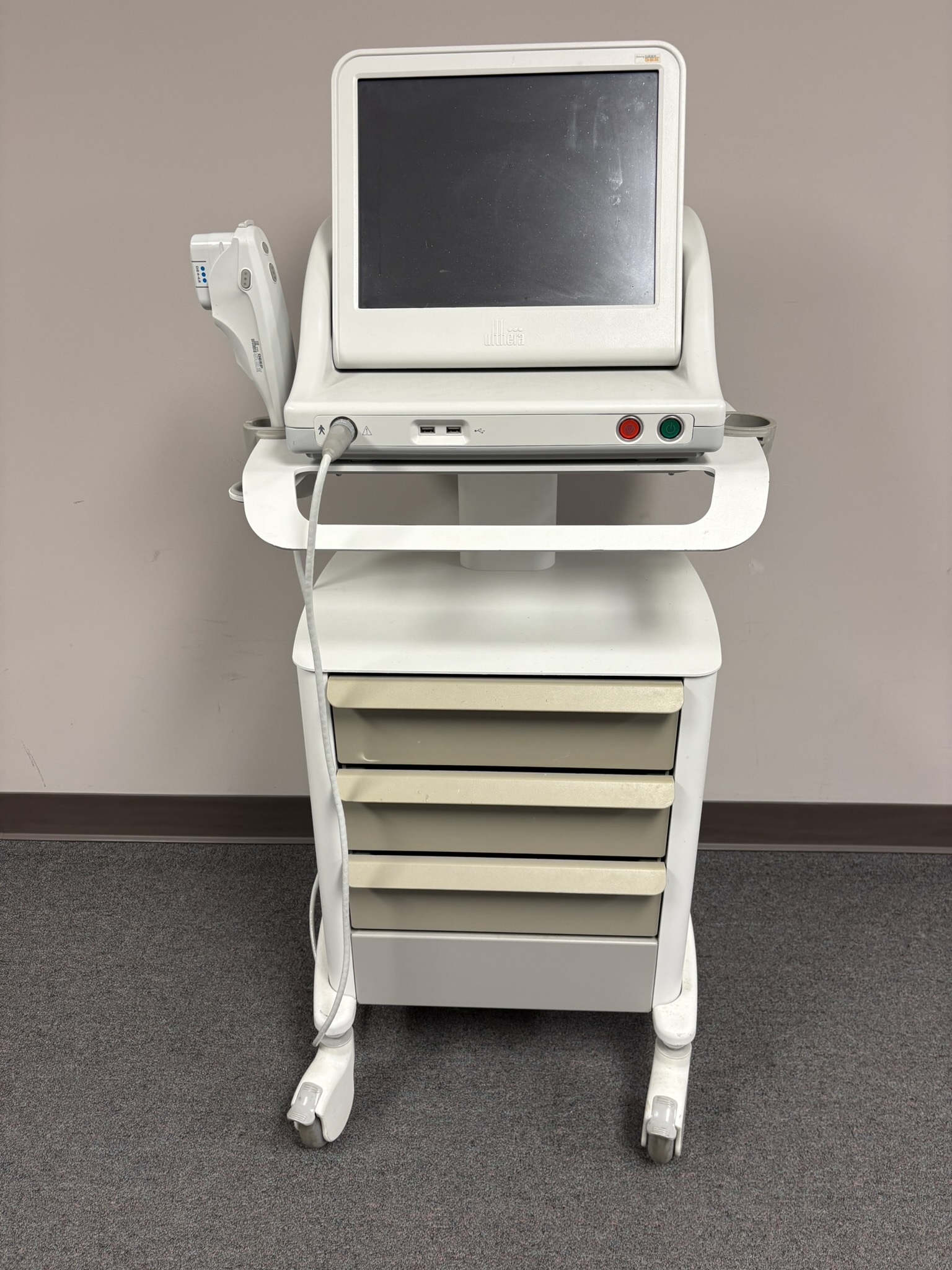 - Ultherapy cart for portable non-invasive skin tightening treatment. A smartly designed wheeled cart makes the Ultherapy system easy to use and transport, and includes storage for all components.