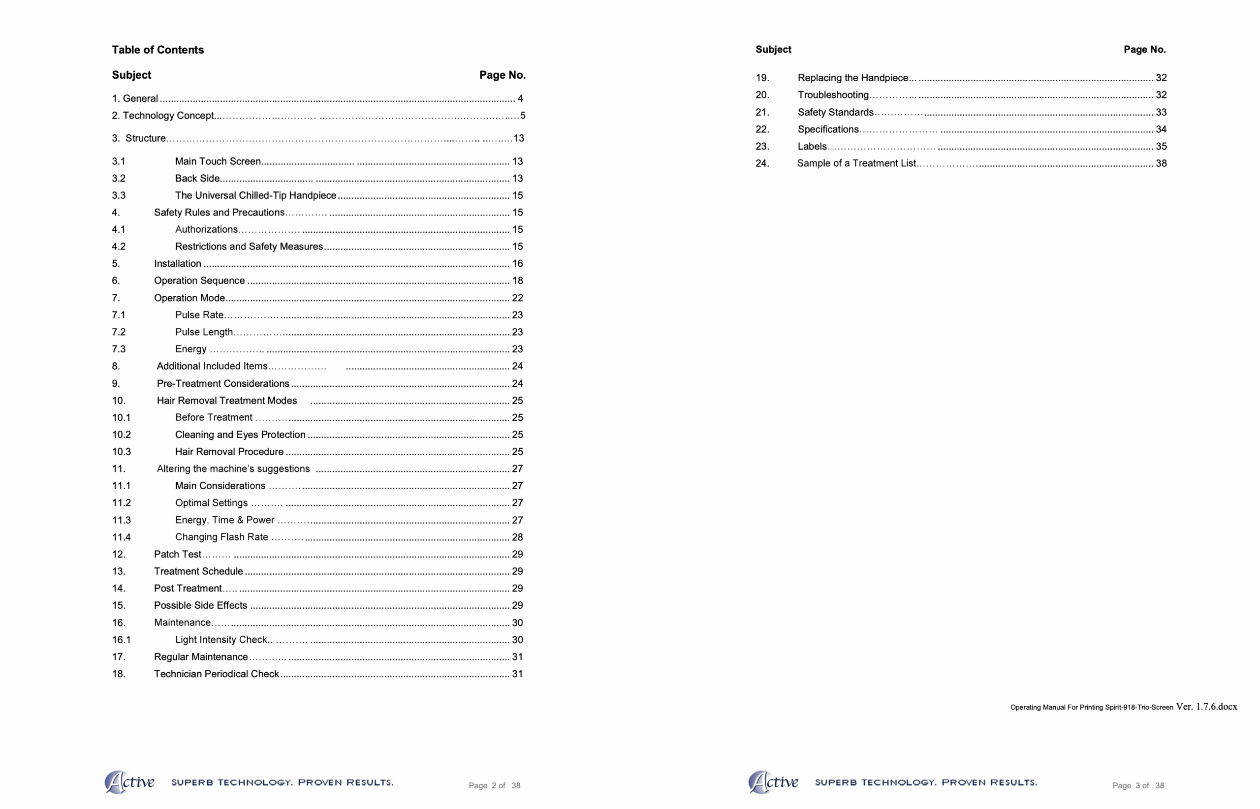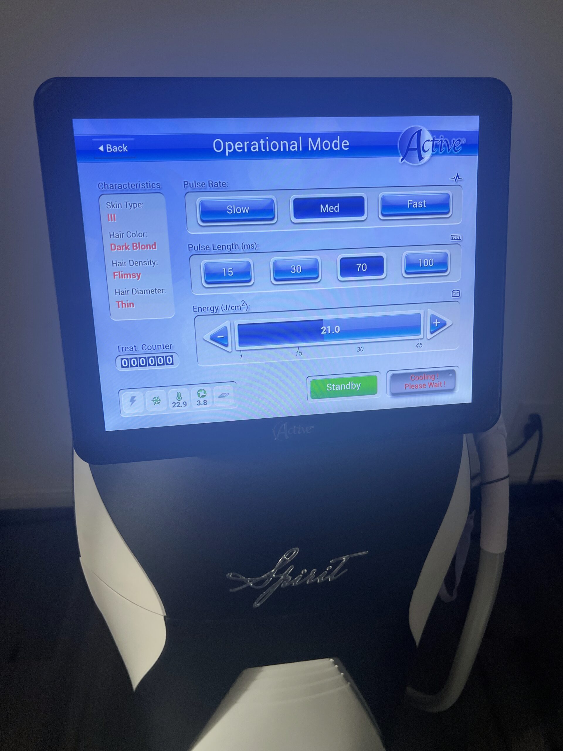 The SPT-Laser, technology developed by Active controls the pulse pattern, according to preselected clinical parameters such as skin color, selected treatment, photosensitivity, hair fiber average diameter and hair density.
