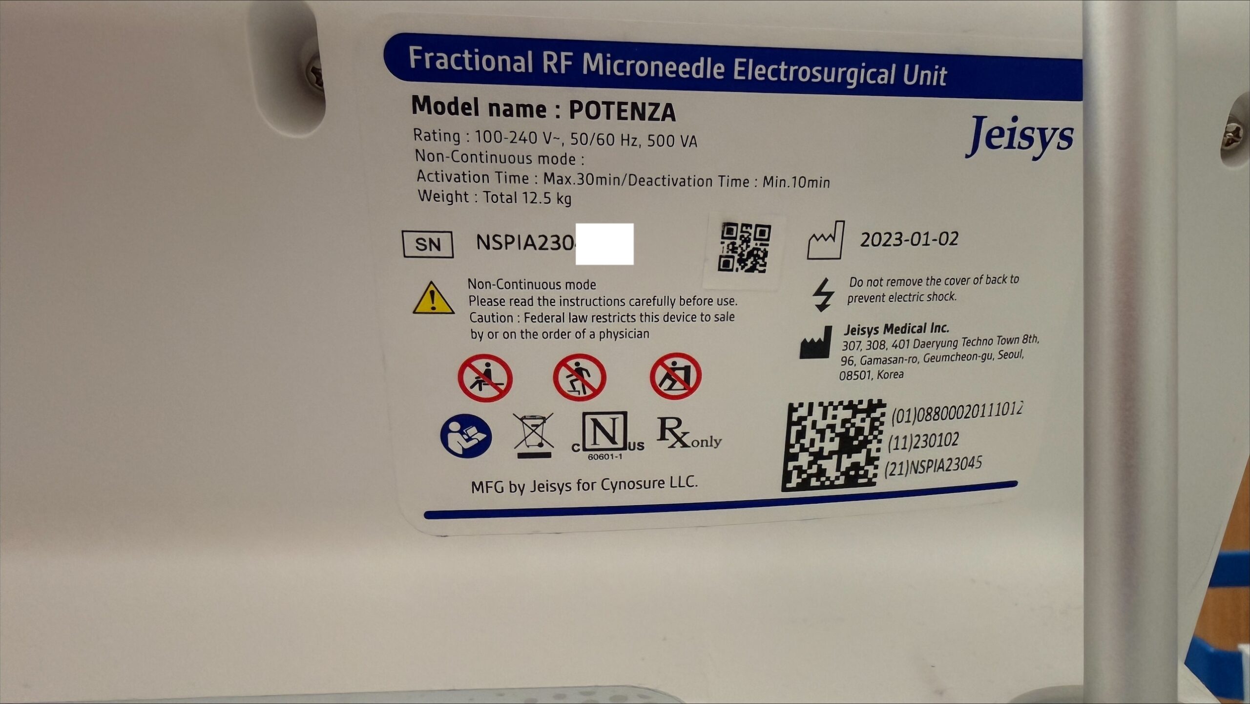 Cynosure Potenza Potenza RF MANUFACTURER NOTES