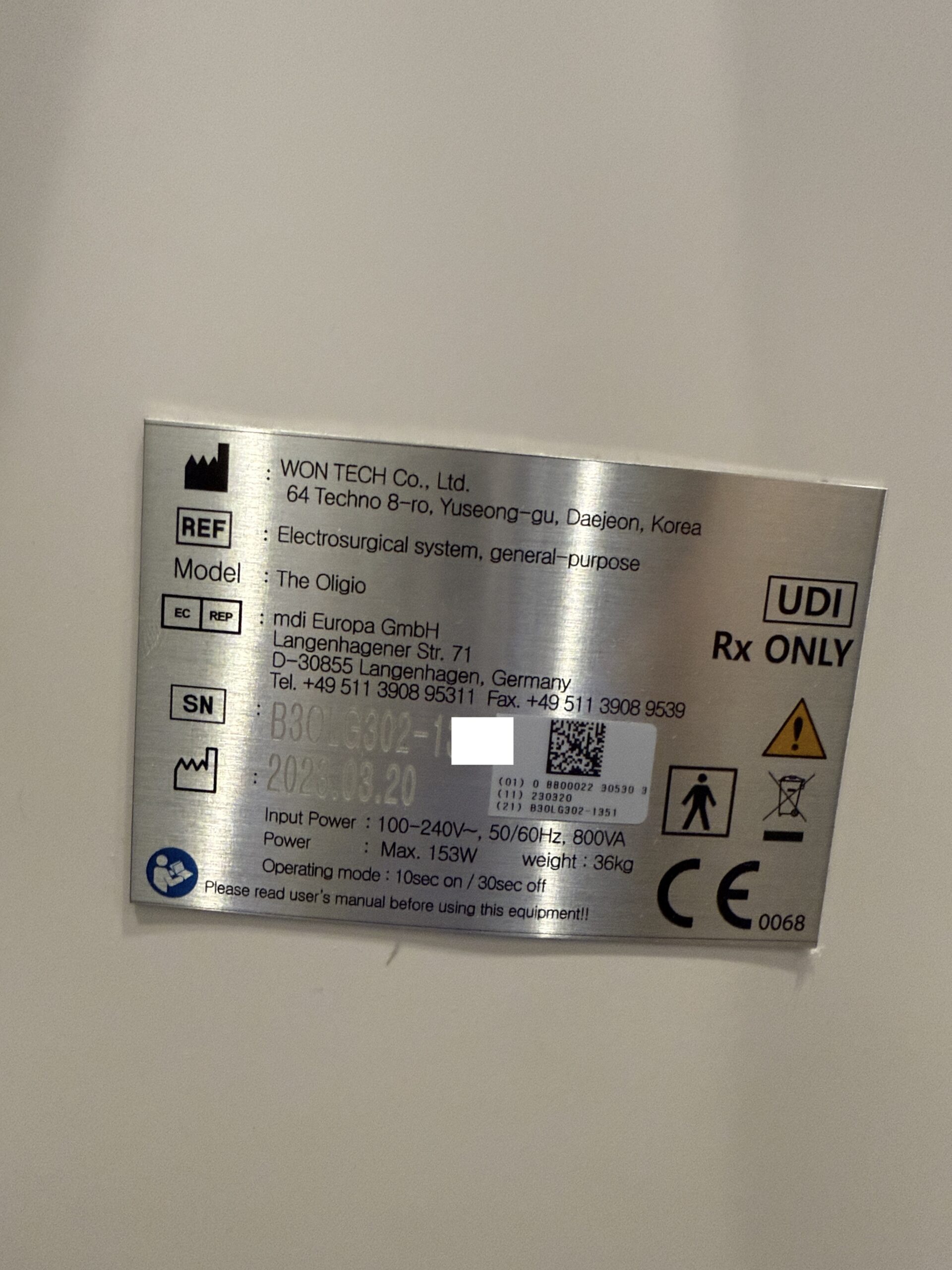 Oligio MANUFACTURER NOTES
