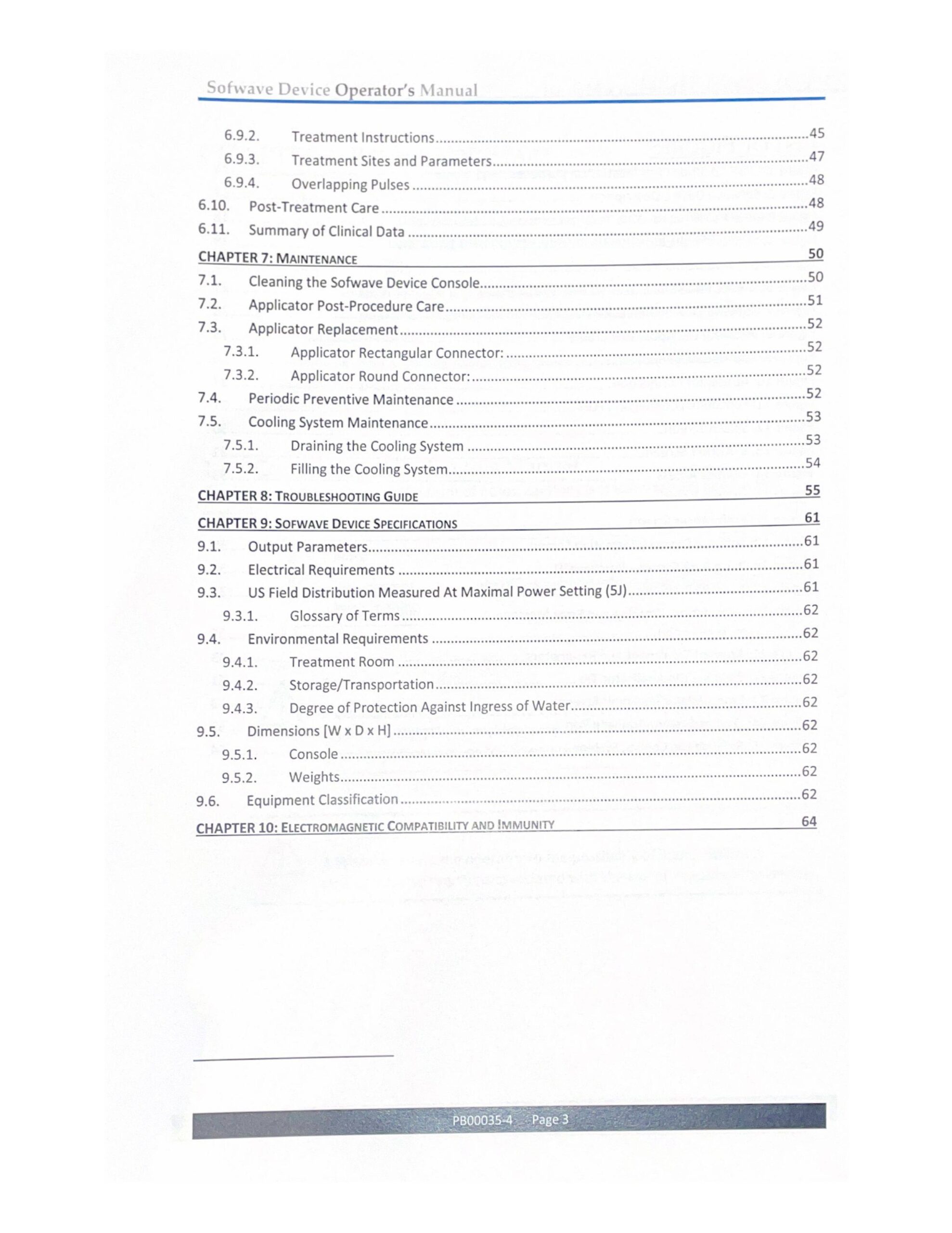Topics may include device components, installation guidance, treatment workflow instructions, safety considerations, troubleshooting information, and routine maintenance recommendations. In addition, clinics often keep a digital copy available for training and internal documentation.